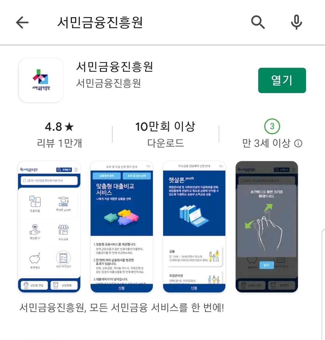 그런데 이젠 바이러스까지 저를 막고 모든 대출까지 막힌 상황에 놓인 저는 햇살론이 다시 떠오르기 시작했어요 혹시 모르니 한번 알아보자 해서 어플로 서민금융진흥원을 다운로드하였습니다 회원가입을 하고 햇살론 유스라는 문구가 눈에 띄어 클릭을 했습니다
